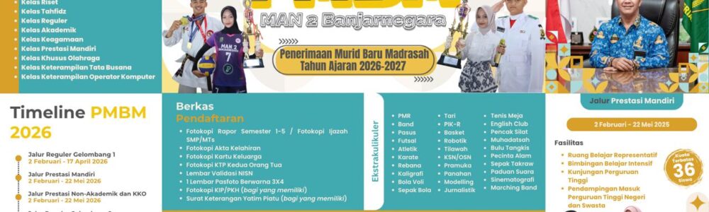 ​Banjarnegara – Madrasah Aliyah Negeri 2 Banjarnegara, yang akrab dikenal dengan sebutan Mandabara, kembali menunjukkan komitmennya dalam meningkatkan kualitas pendidikan melalui kegiatan Jumat Literasi, (30/1). Kegiatan yang diikuti oleh seluruh..