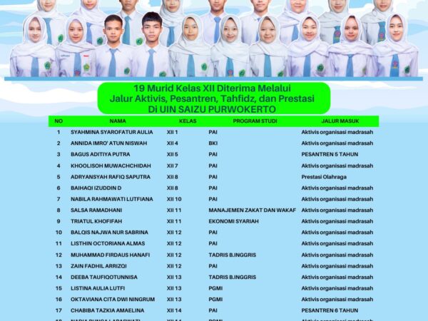 Banjarnegara – Kabar membanggakan kembali datang dari Madrasah Aliyah Negeri (MAN) 2 Banjarnegara atau yang akrab dikenal dengan sebutan Mandabara, (24/2). Sebanyak 19 siswa kelas XII dinyatakan resmi diterima sebagai..