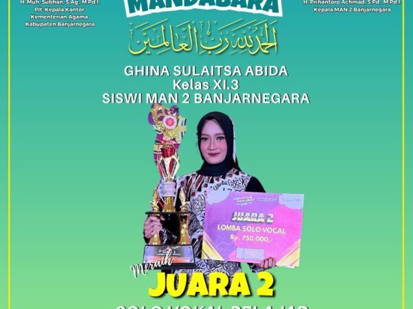 Banjarnegara – Kabar membanggakan datang dari Mandabara (MAN 2 Banjarnegara). Salah satu siswinya, Devi Syifana Ayu Fadhilla, berhasil menorehkan prestasi nasional dengan masuk dalam 50 karya terbaik Lomba Cerpen Festival..
