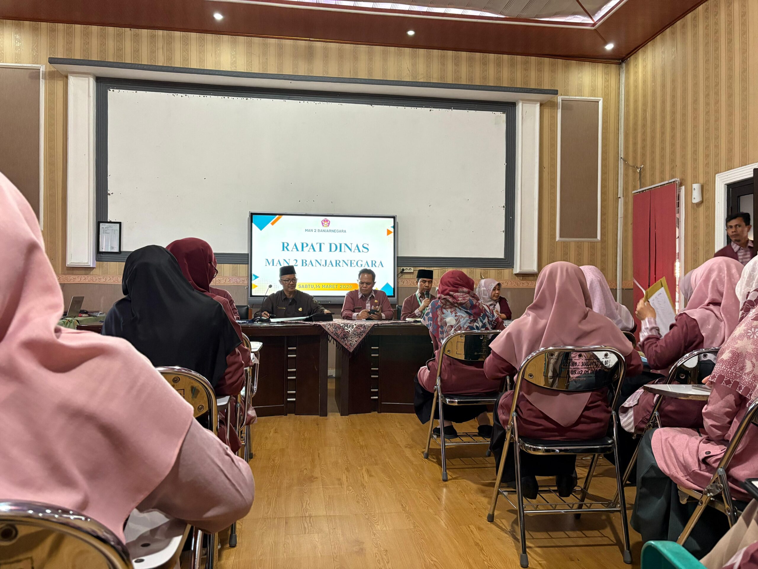Banjarnegara– Menyongsong datangnya hari raya Idulfitri 1447 H, MAN 2 Banjarnegara atau yang akrab disapa Mandabara menyelenggarakan rapat dinas pada Sabtu (14/3). Bertempat di ruang multimedia, kegiatan ini dihadiri oleh seluruh guru dan pegawai tata usaha. Rapat ini bertujuan untuk menyelaraskan agenda madrasah serta memberikan arahan terkait kedisiplinan pegawai selama masa libur lebaran.