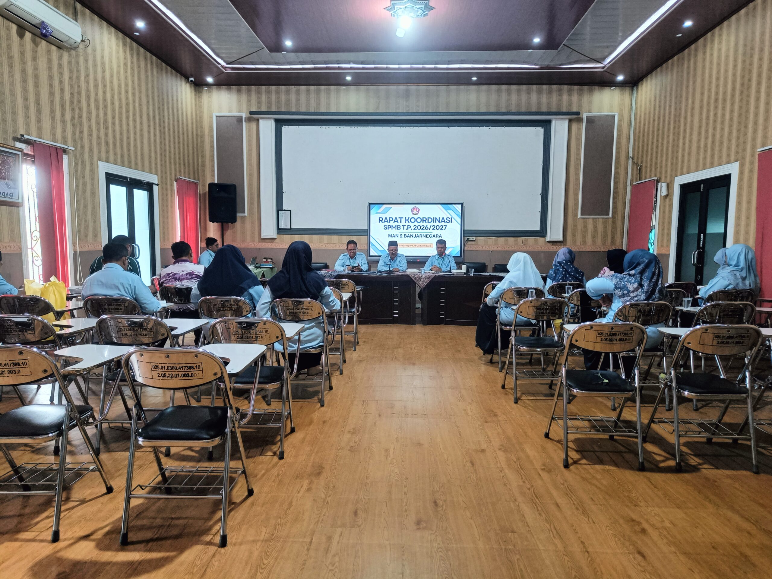 Banjarnegara – Menyongsong tahun pelajaran baru, MAN 2 Banjarnegara (Mandabara) bergerak cepat dengan menyelenggarakan Rapat Koordinasi Seleksi Penerimaan Murid Baru (SPMB) Tahun Pelajaran 2026/2027. Kegiatan ini berlangsung pada Sabtu (10/01) mulai pukul 13.50 WIB bertempat di ruang rapat madrasah.