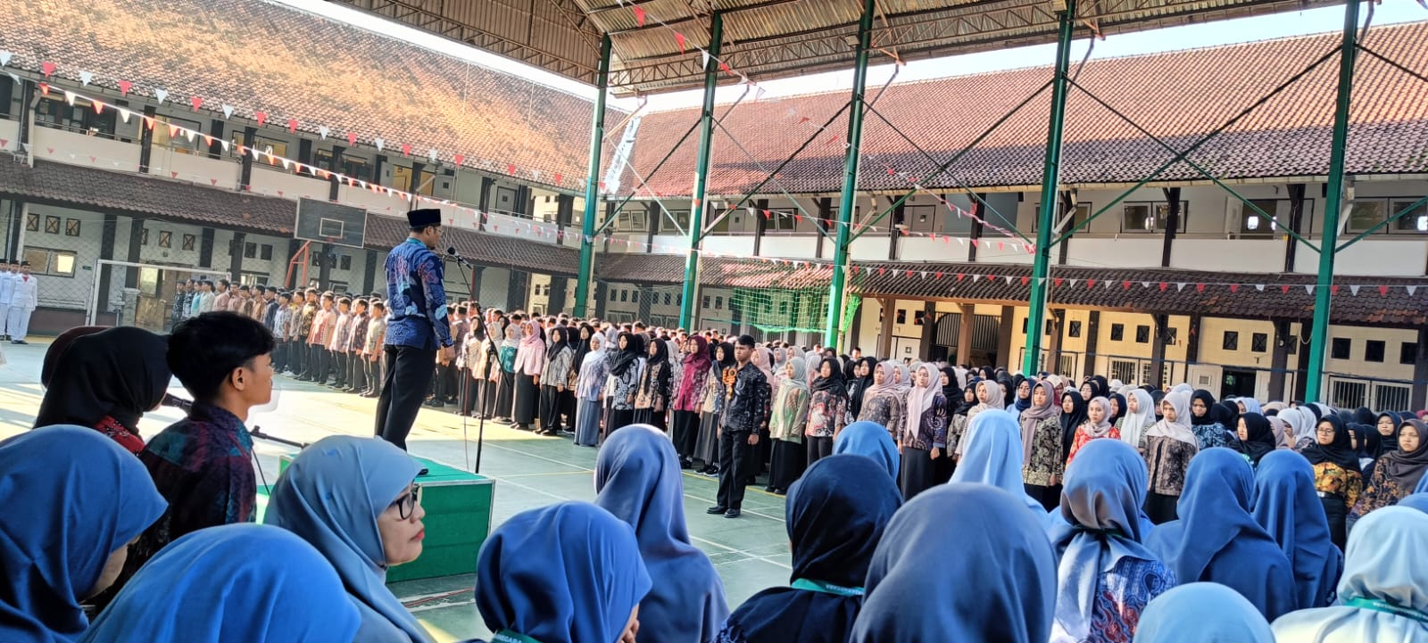Banjarnegara – Madrasah Aliyah Negeri (MAN) 2 Banjarnegara atau yang dikenal sebagai Mandabara, menggelar upacara peringatan Hari Ulang Tahun (HUT) ke-80 Kemerdekaan Republik Indonesia (17/8). Acara sakral ini dilangsungkan sekitar pukul 07.15 WIB di Indoor Mandabara, dengan diikuti oleh kurang lebih 1.400 peserta yang terdiri dari siswa, guru, dan staf tata usaha.